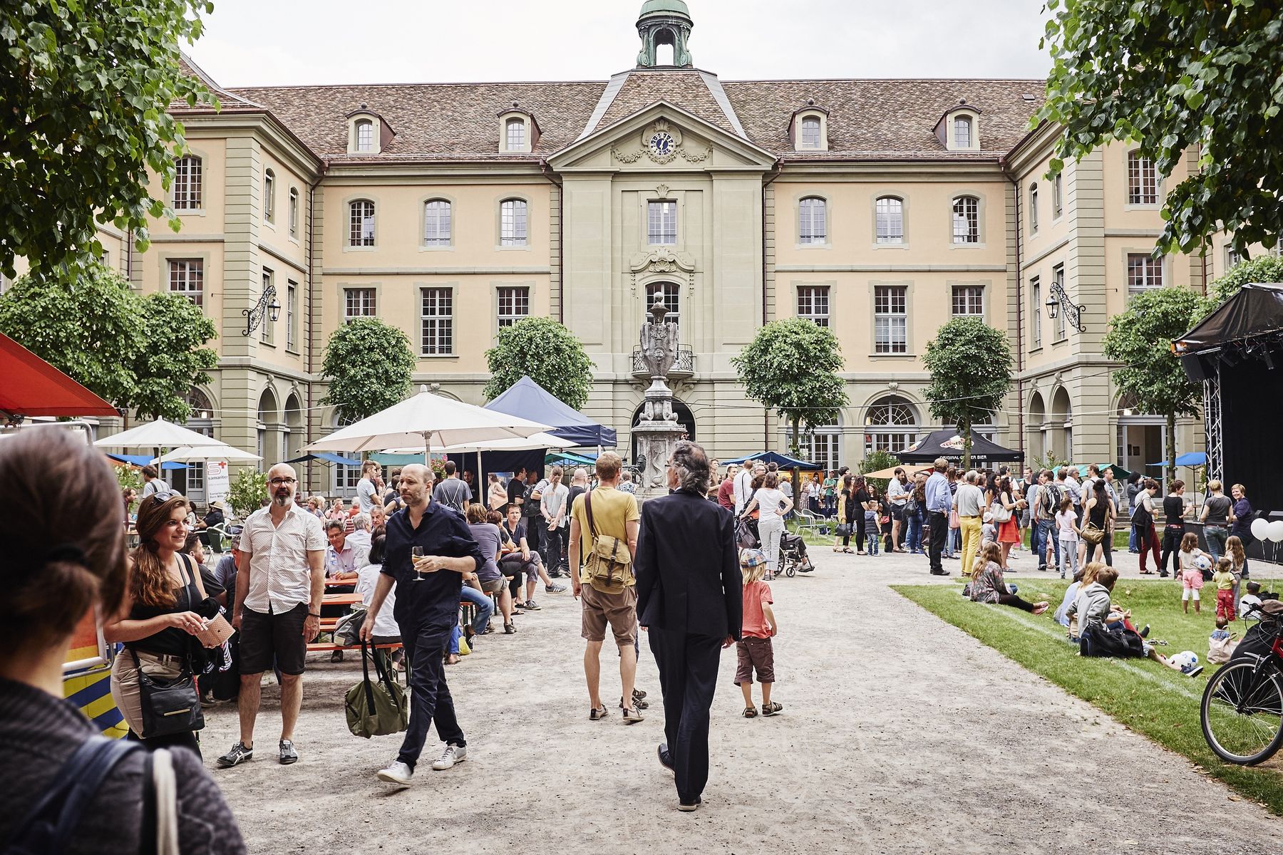 Doch auch kulinarisch kam das Publikum nicht zu kurz. So trumpfte der sympathische Stand von «jolimont» aus Wattenwil auf mit «gfronigem» Bio Joghurt sowie leckeren Crêpes. Rassige Akzente setzte am Wochenende die fahrende Küche «La Ribollita», welche aus einem Vespacar leckere Gemüseeintöpfe und -suppen anbot, derweil das Restaurant «toi et moi» mit seinem Stand im Hof alle anderen Gourmets verwöhnte. Am Freitag startete die kultige Band Fiji! den Konzertreigen auf der Hofbühne und erntete begeisterte Fanreaktionen für ihren trashigen Electrosound. Gleichzeitig machte der Nachwuchs im Checkpoint mit seinen Konzerten gehörig auf sich aufmerksam. Die Bühne gehörte dort diversen Schülerbands. Insbesondere die Grossformation «Hakuna Matata» punktete beim Publikum mit viel Charme, und zuletzt eroberten «L&B» die Herzen mit poppigem Swing. Spätnachts heizten dann «Eldorado FM» mit den Überraschungsgästen «Lo & Leduc» den proppenvollen Spittelinnenhof tüchtig auf. Darauf galt es abzutauchen in die DJ’s Lounge im Kellergewölbe des zweiten Untergeschosses, wo elektronische Musik zu stimmiger Bar-Atmosphäre pulsierte. Die Lounge war auch in der Folgenacht der Renner. Der Samstag startete mit dem bunten Spittelmärit, wo unter anderem Trouvaillen aus dem Burgerspital angeboten wurden. Ein wahrer Höhepunkt war am zweiten Konzerttag der Gig von «Traktorkestar» mit pfeffrigem Balkansound. Zuletzt herrschte kochendheisse Stimmung, welcher nicht einmal die spätnächtlichen Regenschauer etwas anhaben konnten: Nach dem Chilloutset von «2 for Soul» kam es mit badenden Fans im Spittelbrunnen zu Szenen wie aus Fellinis «Dolce Vita»!